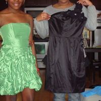 My sisters modeled their dresses for me. All six of my bridesmaids will be wearing the one shoulder black dresses and my Jr. Bridesmaids will be in the cute bubble hems since they are only 13! lol,...