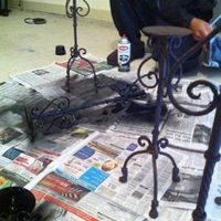 So we painted my candle holders from a rusty brown color to black. I got them for 5 bucks each at Ross...then we painted some candelabras I got on amazon that were beige to black, they were $11...