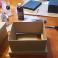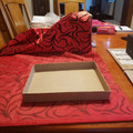 Hello, lovelies...as promised a month or so ago, here is the progress on my card box project. The last piece of material is a black brocade which is scheduled for delivery tomorrow. I have to buy...