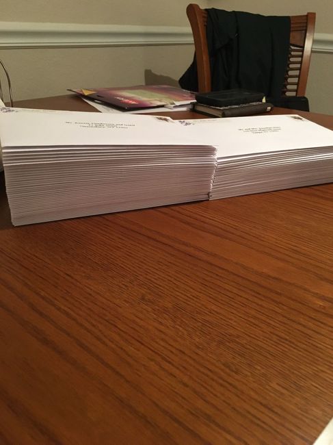 They are in the mail! I went to the post office after work and dropped them all at the post office! I am so excited! Exactly 60 days from today I get to marry the love of my life! July brides, where...