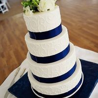 Soooo I have no idea what to do with my cake. Should I have an all white cake or put my wedding colors into it? My cake has 3 tiers and will have all white roses on the top and 3 in a bunch on the...