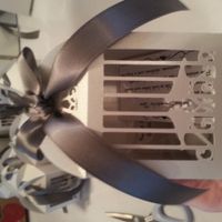 Spent the entire Saturday getting the favors together. Downloaded a file for the birdcage boxes and used the cricket to cut them out. We put the jordan almonds on them today and tied the ribbons on...