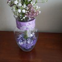 Beginning stages of making my DIY centerpieces. Our colors are purple and grey. I'm thinking about using cool water roses (light purple color) instead of the white, but this is what I found to do the...