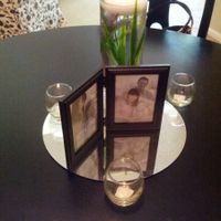 This is a sample set up - frame, which I would paint silver/platinum or gray, is our table "number" named after individual songs that have special meaning to us. FH is making CD album art of these...