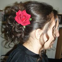 I think she's gone mad. She turned up for the bouquet trial two weeks ago with a car boot full of things for me to look through to see if I wanted to use them - little red roses I could wind onto hair...