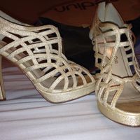 Got my shoes today.. *yay* they're so pretty! On sale at Bloomingdales and got them on the clearance rack, the last one in my size (meant to be) In a glittery champagne color! What do you ladies...