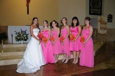 I went to Davids this past weekend and talked to a consultant about bridesmaid dress colors. FH wants to wear orange tie and vest (for the baltimore orioles - lol!) and his groomsmen will wear the same. I wanted to originally do hot pink bridesmaids...