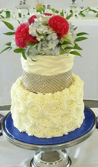 We are having a cupcake display instead of a cake but we are doing a cutting cake. We are having a lace like design on the cake and our leaf cake toppers but I feel it'll be too boring and bland. For those that have had flowers on their cakes, did...