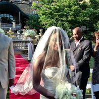 FH and I met June 2008 at a party at the Gaylord National Harbor. I was with my girlfriends and he was with his bff who actually introduced us. Before saying "hi" the first thing I said to him is "Your teeth are very white" lol. We chatted for a bit and I gave him my number. He said he would call the next day and he actually did! First score! We went on our first date a few days later on July 4th. We started with dinner at a sushi restaurant around 8pm then walked across the street for ice cream. Right after that we watched the fireworks outside in Georgetown, DC. Neither of us were ready to leave each other so we decided to see a movie, Hancock, where he gave me a foot massage...in the movie theater! I think I was sold at that point. Second score! We still weren't ready to leave each other after the movie so we sat at the monument downtown and talked for a while. By the time he took me to my car it was 2am! It was the BEST date I've ever had. Third score! The next day I had brunch with my girls and told them he would be my next bf lol, who knew we'd end up getting married! THE PROPOSAL I wanted to throw him a birthday party since he'd never actually had friends, cake with candles or a birthday song! I planned his party with his friends, cake, favors, birthday gift...whole shebang lol. I wanted it to be a surprise but he kept asking questions and wanting to know what the plans were, so I got tired of being evasive and just told him the details. He was already planning to propose at his party so he wanted to know what was going down. Earlier that day he mentioned that a camera crew would be filming the restaurant for an interview and I didnt think much of it. We showed up and the camera guy was there filming the building. While we're inside I see Gary walk off with the camera man and I had an idea that something was up. I asked my friends and they acted clueless and I asked my mom who gave me the blank stare o_O. Just as we were going to cut the cake he says he wants to talk and pulls out a full page printed speech. He thanked everyone for coming and at that moment I noticed that he was wearing a mini microphone on his collar, so I blurted out "Are you wearing a microphone??!!" He thanked me for interrupting him lol and he continued. He told me how much he's been able to grow and learn in our relationship and how much he valued our relationship. He said that he found the person he could continue to grow and learn with. He got down on one knee and asked me to be his wife. So the surprise was on me, although I had an idea what was going down. Turns out he hired a videographer and a photographer to capture the evening. We had a LOT of fun that night and it was really great being in a room full of people who showed us so much love. It was exactly what I wanted and perfect.
