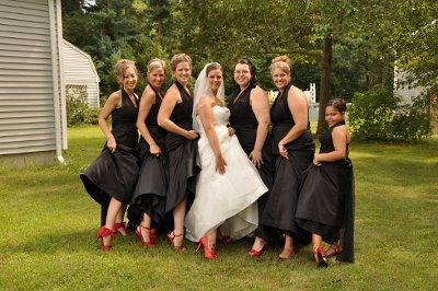 Long story short, I found a woman on Craigslist who is selling all of her wedding decor for cheap. It's all in deep red roses with some white roses. So I had thought I would just have my 3 bridesmaids pick a black dress and we would do cute jewelry...