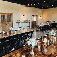 We will have a mix of six round tables and six 10-ft long farm wood tables for our guest seating at our reception. We are doing scattered greenery down the middle of each long table with floating...