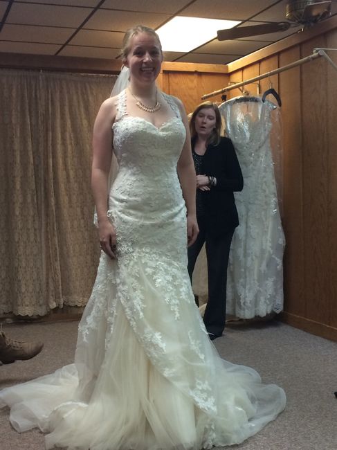 Today my veil arrived (yay) so I unwrapped it to make sure it was in good shape, the right one etc. Since I had to get my dress bag out anyway to hang the veil up, I figured I might as well try my...