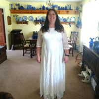 Here is my dress. I have no idea on jewelry. With my neck line, do I do a necklace of some kind? I'm not skinny so any choker type or short chains will make my chin look even bigger... My hair will be...