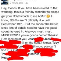 Something must be in the air!! On Sunday there was someone who didn't invite S/Os to an NYE wedding, yesterday there was a Facebook Walmart registry announcement....well let's just add this to the...