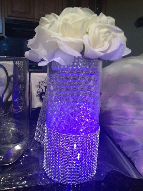 My colors will be plum and black, with hints of white as well. I would love to see pictures of similar color schemes. I just want visuals. For centerpieces I love the ones with flowers under water.