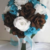 Okay Trying to figure out cascading or round bouquet? My colors are peacock theme (purple & turquoise) I will be using silk flowers. These are examples but instead of the brown it would be purple.......
