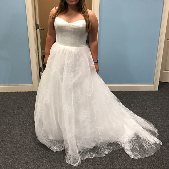 I finally got to try my dress on! When I ordered it, the only size they had in store was so small so I never got a great idea of what it looked like on. I love it! Sorry about the bad lighting! The...