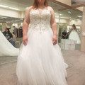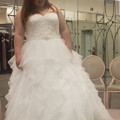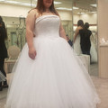 These are the dresses that i have tried on so far. My theme is celestial. I thove the dress with the gold beading because I feel like it went with my theme more and the train was long, which is...
