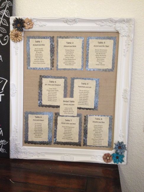 I've decided I'm going to do table assignments, and I'm looking into ideas of how to display it in an easy to see way for guests. I won't be doing assigned seats so I won't be having any escort cards. I'm thinking of either a very large frame with a...