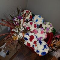 So my FH aunt has worked on our centerpiece flowers all day today. I am super happy. We have 9 out of 11 done (: I'll show two examples she did in the comments. They are scaled down. Tables are...