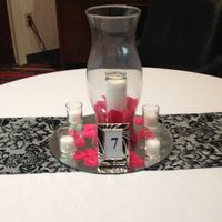 So the hotel has hurricane globes and 12x12 square mirrors. So I was going to with the look on the right but using the fuchsia petals in top left on the mirror like bottom left. I think that would...