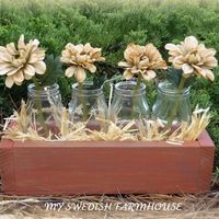 I'm making a box similar to the picture below to hold 3 mason jars and will make flower pens (with daisies of course) to place next to my guest book. In the picture with the flower pen they placed...