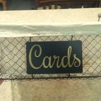 This is the card basket for our gift table. It has a little chalkboard plaque on the front which I added a gold vinyl decal to-I cut it with my Silhouette machine.