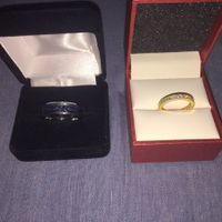 Our bands came in! He doesn't wear rings, so when he tried his band on he was confused and asked "Is it supposed to be this loose at the bottom?" Lol (we did get his finger measured at a jewelry...