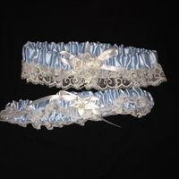 My Nana is wonderful and made me all of these items for my wedding... my garters (one to throw and one to keep) also my something blue my flower girl basket my ring pillow my bird cage my guestbook...