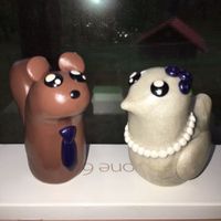 My cake toppers arrived today! I am absolutely in love. They were custom made from Etsy (Mud and Wine Studios). FH's name for me is Bird, and his first name is Verle so he is my squirrel. Our invites...