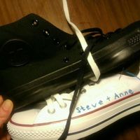 I don't think I posted this earlier... I made these for Steve and myself, following inspiration from an Etsy seller... The 3rd one is the shoes I got at Payless Shoe Source, to wear them for maximum...