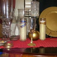I swear I thought after our wedding my house would be wedding free, Ummmmm no we get home today and walk into wedding hell...vases, flowers ,centerpieces ,candlearbors, gifts, seating chart , chargers...