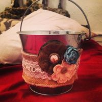So I sold my junker car for $700 and have been going crazy with buying my decorations! I'm pretty proud of my first DIY project so I just had to share my flower girl bucket! (: