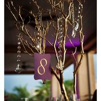 I'm torn between 2 ways to do our table numbers.. I'm doing the tree branch centerpieces but can't decide if I should do it just like that w/ the numbers hanging or option 2 Helppppppp lol! On mobile...
