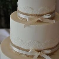 Me again with yet another cake question. I have three designs I like. One is covered in white fondant with burlap and lace ribbons, the next is iced in white going different directions and swirls with...