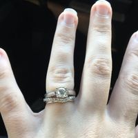 I got my wedding ring and I love the way it looks with my E-ring!! ❤️ (Sorry my nails aren’t done)