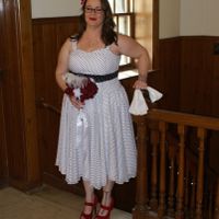 I'm confused on what color to make my niece's dress. My dress (white w/black dots) and MOH's outfit (white top, black skirt) are below, obviously its a polka dot kind of thing. I found the dress pattern for my niece, thats the pink one with polka...