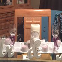 What do you think of my setup for our table? We're planning my wedding and my sister's high school graduation open house so there's a lot of clutter in the pic. Sorry!