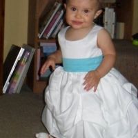 Here's my daughter in her dress. I love love love it (and her obviously)!! She just got out of the bath (hence the wet hair) so I decided to try it on her to make sure I didn't need to order yet a...