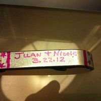 So here's a ROUGH mock-up of the 2nd half of the favors. The first favor in the bag is hand sanitizer with custom labels I made b/c I'm a nurse. The 2nd half is bottle openers with our names and date...