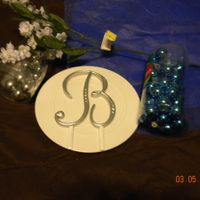 I have many projects planned but I finally finished one. I couldn't find a cake topper that combined my theme (Christmas/winter), colors (blue, silver and white) and a "B" (for Beale, FH's last name...