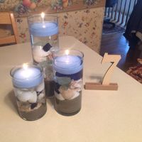 My first DIY project! My venue is at the beach so I wanted to incorporate that style into my centerpieces. This was just a test run, so the table numbers aren't spray painted yet and the levels of the...