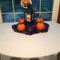 I finally made a mock-up of the idea I've had for our centerpieces (waiting on a white tablecloth and for real pumpkins). They were a concern to me because we are having family style dining and I...