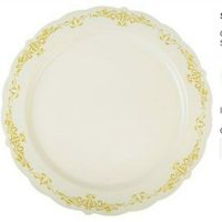 We decided to go with the heavy duty plastic plates. Only problem is I'm having a difficult tine making a decision on which ones to choose. The gold rimmed plates are beautiful but they also cost more...