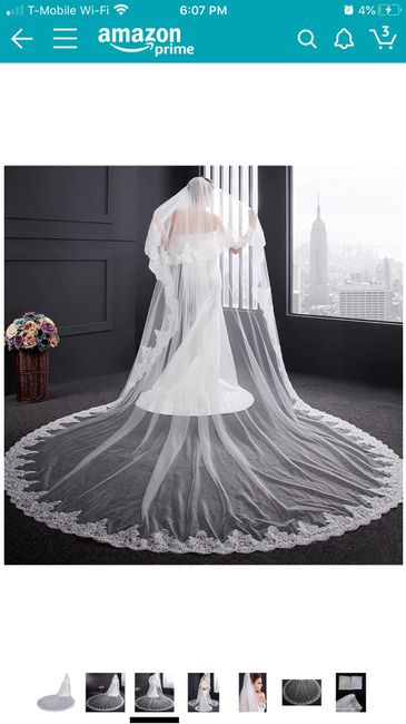 I always dreamed of wearing a long veil but I’m not sure what would go better with my dress! HELP. I plan to order one off amazon. Need to order it this week to get it on time. Below is my dress paired with a fingertip length veil at the bridal shop....