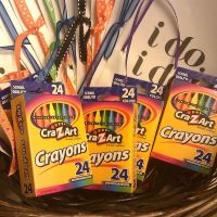 I put together these cute wedding themed coloring books today. I just cut the pages, punched holes in them and tied them together with different ribbons! I've also gotten the crayons now while they...