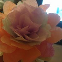This is the start of my diy flowers! I'm doing the rainbow ones together for my bouquet...I'll make the maids and moh theirs in solid colors to match their shoes. It was my first one, but I'm pretty...