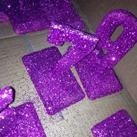 Our colors are navy and fuchsia so we went to Hobby Lobby and bought wooden numbers and glued them to a wooden square. We sprayed them with Elmer's spray glue and then poured fuchsia glitter all over...