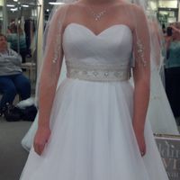 My maids of honor(2) are wearing this dress in coral: http://www.davidsbridal.com/Product_Short-Stretch-Satin-Dress-with-Sweetheart-Neckline-F15615 My bridesmaids(4) are wearing this dress in canary:...