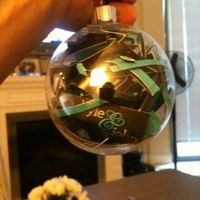 I posted earlier the bouquet I made today but I also did a few other things: 1.) I took one of our friends' wedding invite, cut it into strips and then put it inside this glass clear Christmas...